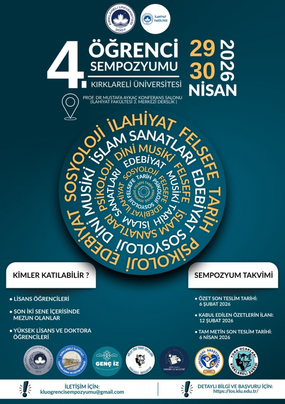| IV.ÖĞRENCİ SEMPOZYUMUNA ÇAĞRI 50 Okunma Kırklareli Üniversitesi İlahiyat Kulübü, Kırklareli Yardımlaşma ve Eğitim Derneği, Kırklareli... | ||