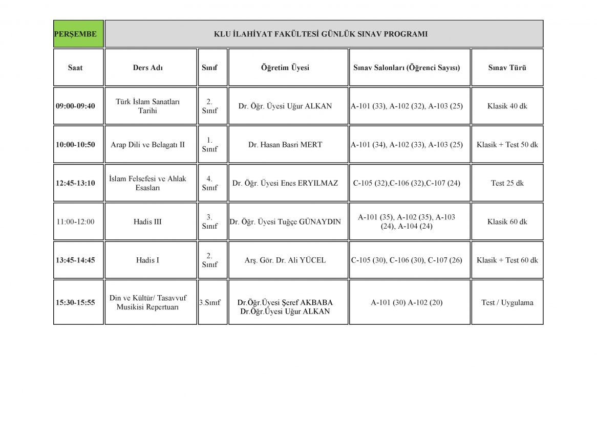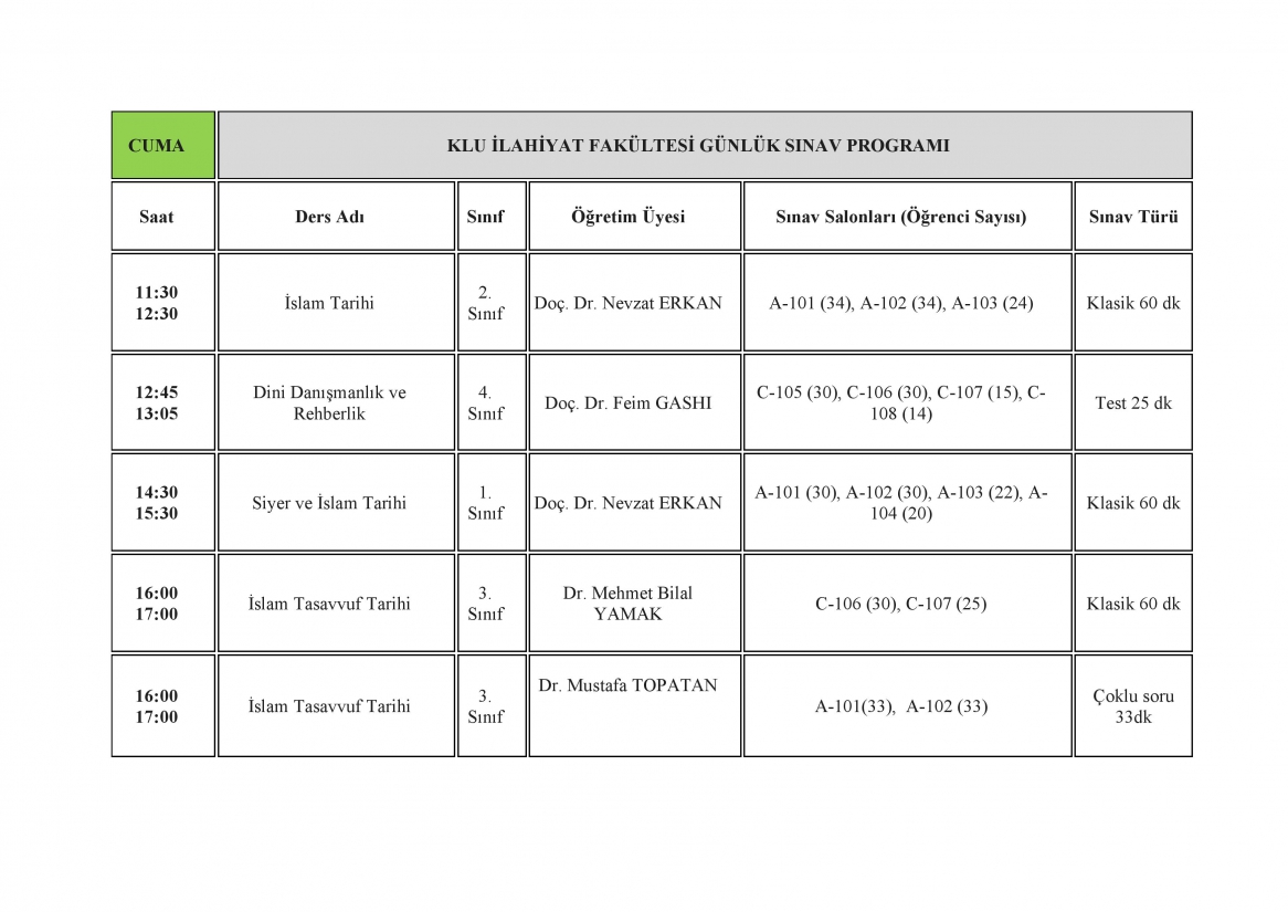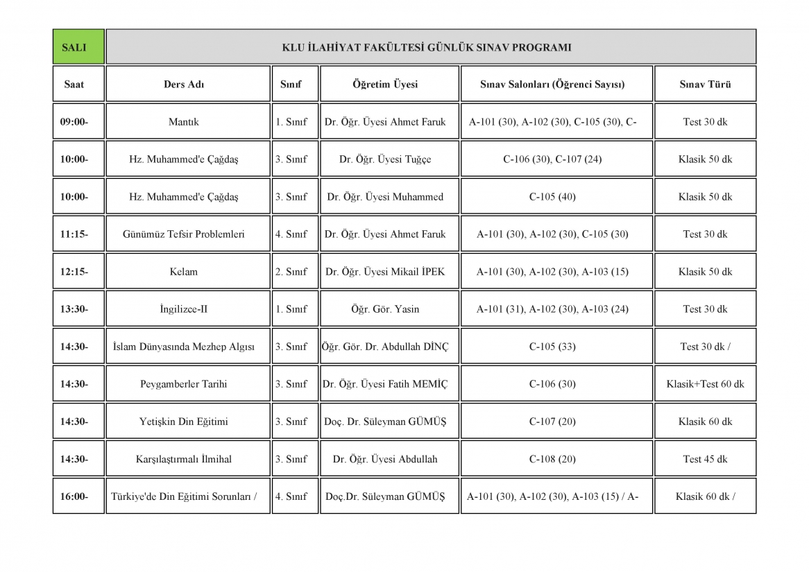 VİZE SINAV TAKVİMİ