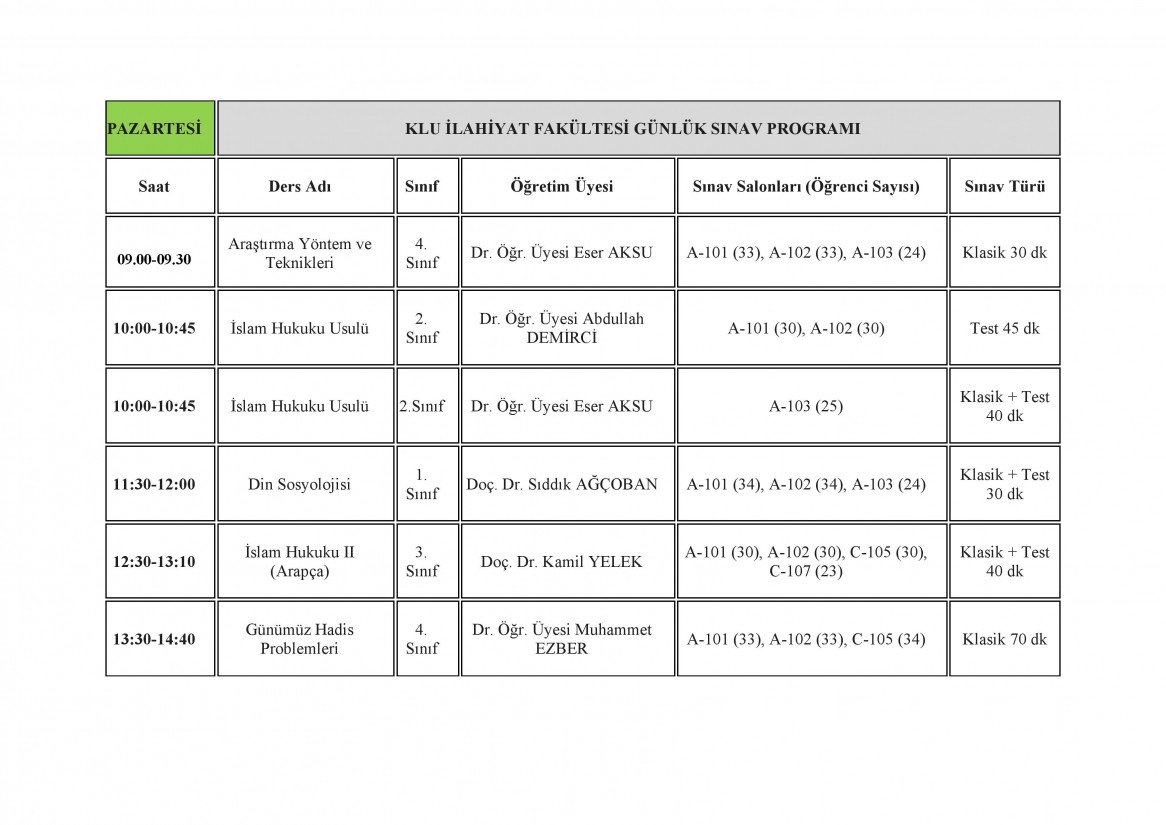 Sınav Uygulama Kuralları
