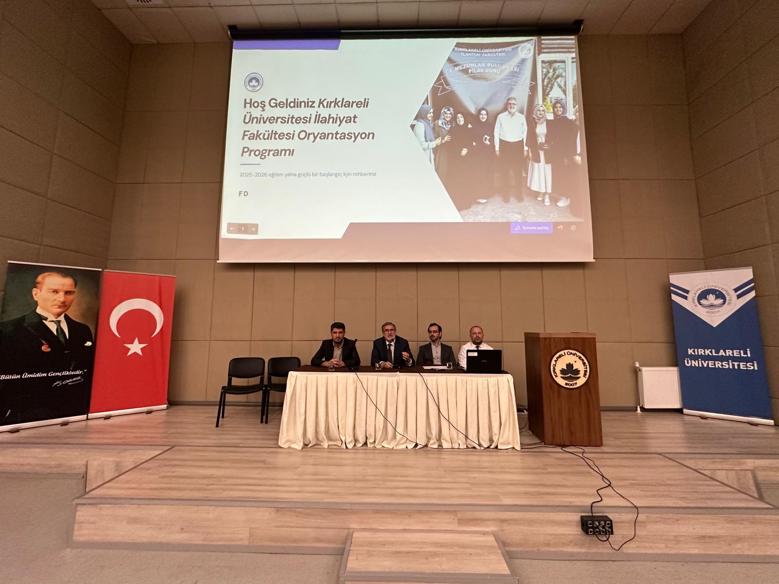 İlahiyat Fakültesi Prof.Dr. Mustafa Aykaç Konferans Salonunda 2025-2026 eğitim öğretim yılı Zorunlu Arapça Hazırlık sınıfında öğrenim görecek öğrencilerimize yönelik 01.10.2025 tarihinde bir Oryantasyon Programı, gerçekleştirildi.