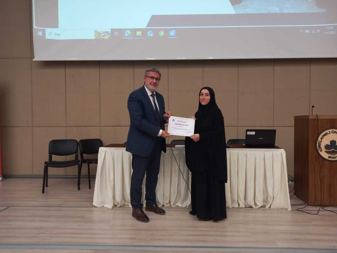 Programda ayrıca, geçen yaz dil eğitimi için Ürdün'e giden mezun öğrencilerimizden Fatıma Betül Turgut, Arapça öğrenim süreçlerine dair deneyimlerini paylaşarak hazırlık sınıfı öğrencilerine motive edici bir sunum gerçekleştirdiler.